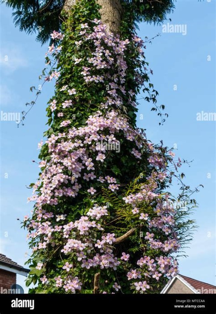 Clematis manage to climb trees and poles by twining their leaf petiole around appropriately sized support structures. The petioles are not large enough to wrap around thick objects. Experts suggest that support structures with a diameter of ¾ inch (1.9 cm.) or less are ideal for growing clematis on a pole or wall.What climbers are self-clinging?