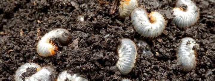 They are whitish in color with dark areas at the rear and a brownish head. The adults are beetles. The adults lay eggs in the soil. Grubs live in the soil and feed on roots of many different plants.