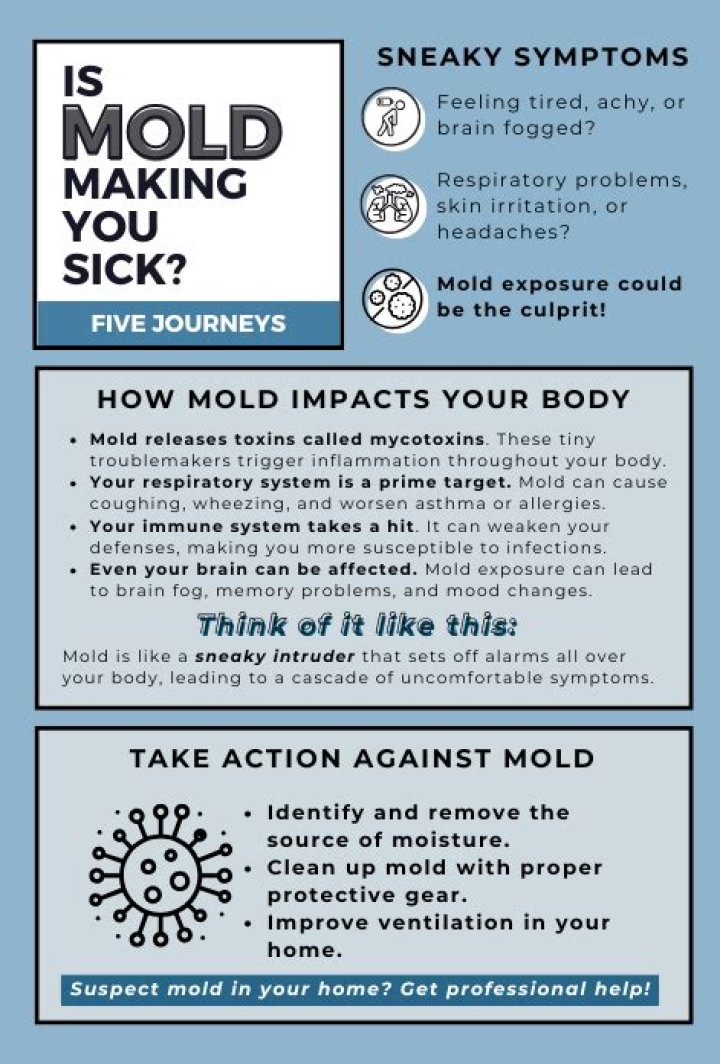 Inflammation: Mold spores act as irritants, which can trigger the body to mount an immune response. This can lead to inflammation throughout the body. Inflammation in the brain can impair cognitive function, and in the case of chronic inflammation, this can lead to long-lasting cognitive impairment.