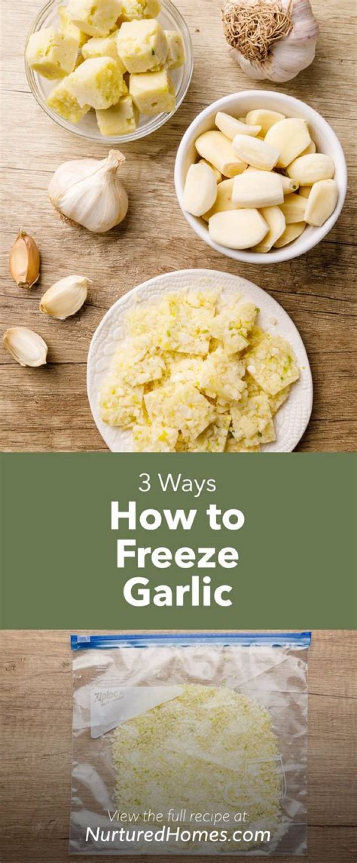 Garlic can be frozen in many forms, including whole raw or roasted garlic cloves, garlic paste, and minced or chopped garlic with or without oil. My favorite way to freeze garlic is in a little bit of oil, since I usually sautee garlic in olive oil when I’m using it in recipes anyways.