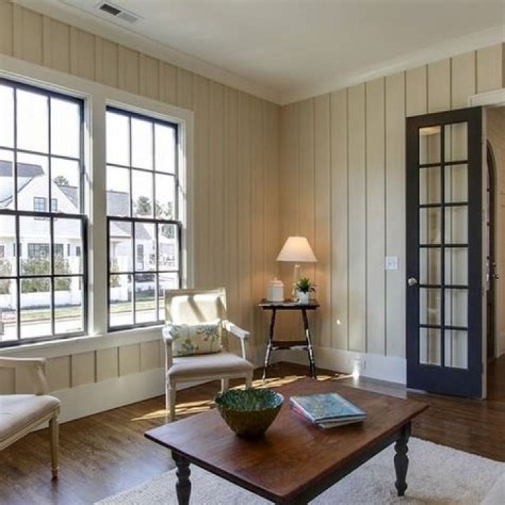 Select hues that are particularly light, such as sand tan, buttercup yellow, cream white or light peach, to give the room a light and airy look. Lighter paint colors also visually make the paneling grooves less noticeable, whereas darker colors often make imperfections in a wall more prominent.
