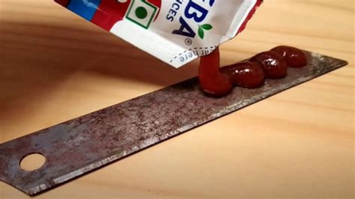 Kitchen utensils, outdoor furniture, and garden tools can develop small rust spots. Apply a thick layer of ketchup and let it sit for 30 minutes. Rub with a soft cloth and rinse well. This solution works best on small spots of rust, not on metal that is covered completely or corroded with rust.