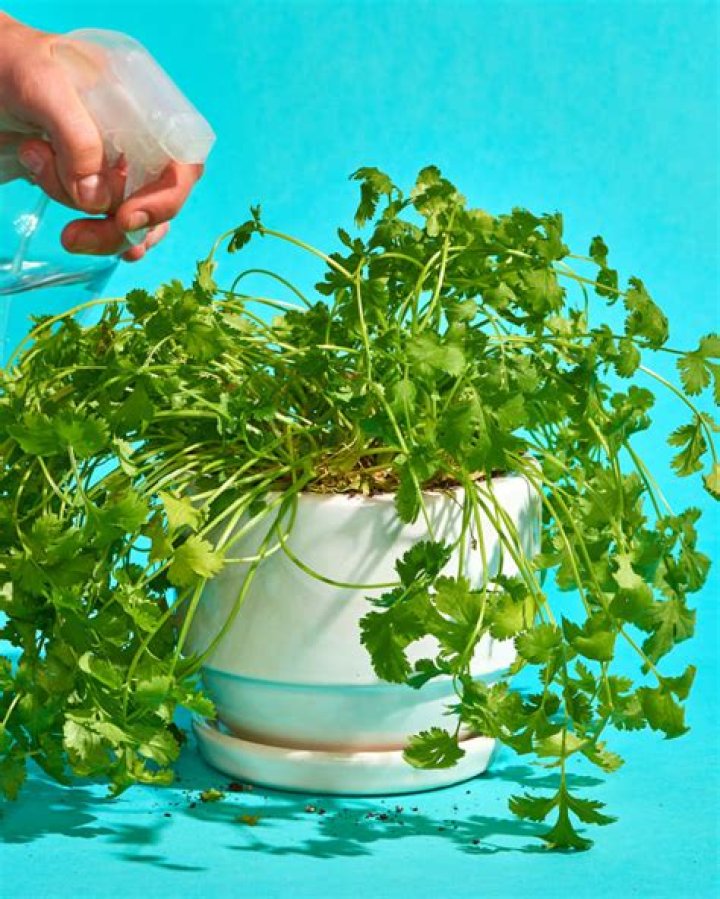Keep the soil regularly moist, but not soaked. Good drainage is essential, as cilantro has deep roots. Aim for about 1 inch of water per week.