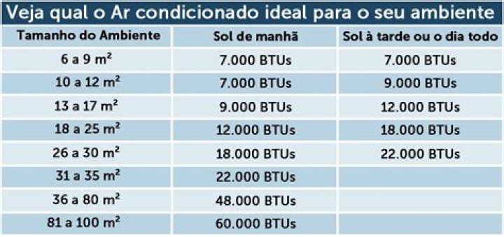 Basado en esta temperatura, una habitación de hasta 12 metros cuadrados solo necesitará 6.000 BTU, hasta 16 metros cuadrados un aire de 12.000 BTU, 25 metros cuadrados un aire de 18.000 BTU y hasta 30 metros cuadrados se requerirá un aire de 24.000 BTU.