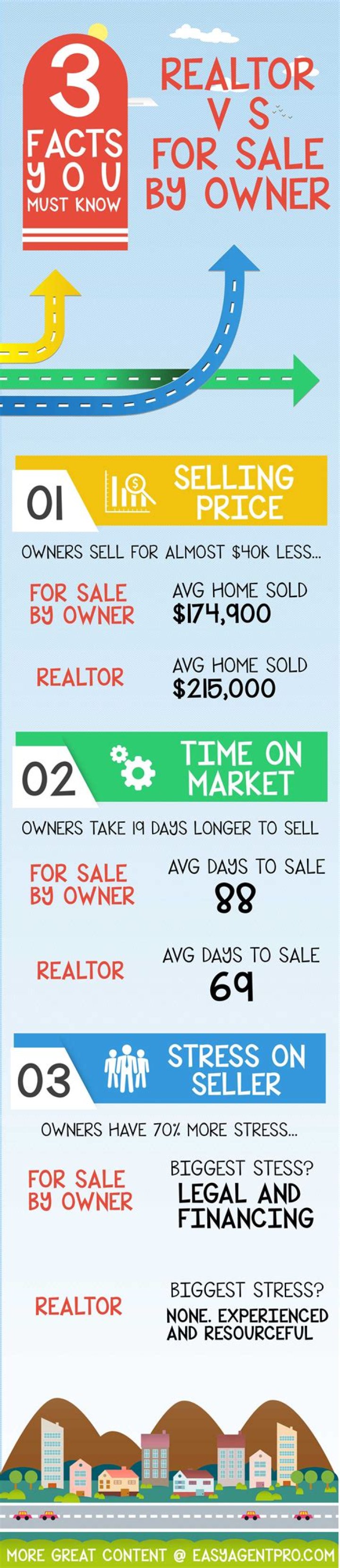 Choosing to sell FSBO doesn’t really save you money. On average, homes sold by agents get $295,000 compared to $217,900 for FSBO. When you find the right agent, they will price your property to get the most money in the shortest time, a combination that can mean 10-30% more net profit.