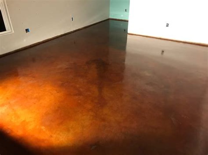If the concrete floors are particularly smooth or have been polished, you should sand them before staining. The best concrete surface for staining is rough and porous to allow good color penetration. Smooth, glossy surfaces will prevent all types of stains, even acid stains, from properly sticking to the floor.