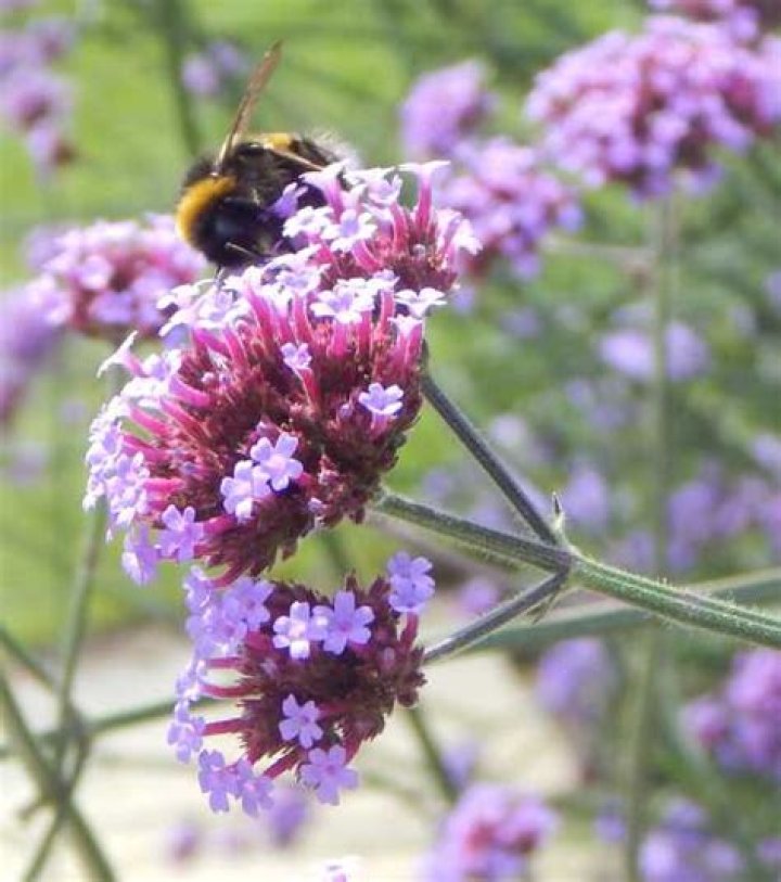 Verbena Bonariensis with Any Milkweed Variety Verbena grows up to 6′ tall and branches into spiky purple prongs. The stalks are thin, and the flower heads small, which makes this an excellent see-through plant.Do bees like garden verbena?