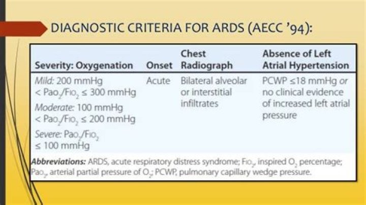 According to the Berlin definition, the acute respiratory distress syndrome (ARDS) is classified as mild, moderate, and severe by using an arterial partial pressure of oxygen (PaO2) to fraction of inspired oxygen (FIO2) threshold of 300, 200, and 100 mm Hg, respectively (1).