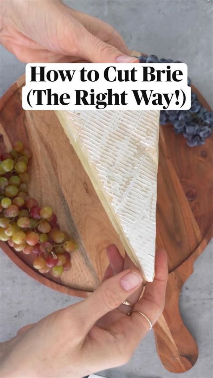 To cut a portion from a wedge of Brie, always cut along the length of the wedge. Do not cut a communal wedge of brie widthwise. Taking the point for yourself, or “pointing the brie,” is considered a social faux pas. Do not remove the rind from a communal wedge or wheel of brie.