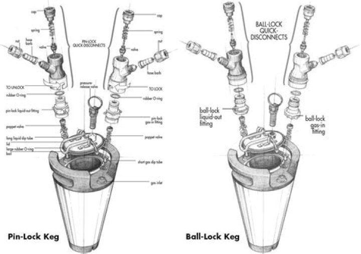 There are three styles of kegs that you can use. There are Ball Lock, Pin Lock, and sankey kegs. Ball and Pin lock are very similar, but their small differences do set them apart. Sankey kegs are most used by commercial breweries, but can be used by a homebrewer just as well.
