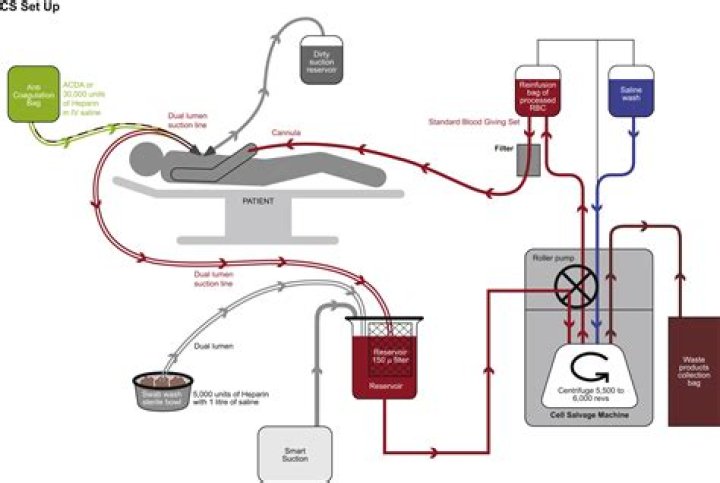 To recycle the blood, a machine known as a cell saver is used to collect what a patient loses during surgery, rinse away unneeded fat and tissue, and then centrifuge and separate the red cells, which are then returned to the patient should he or she need it.