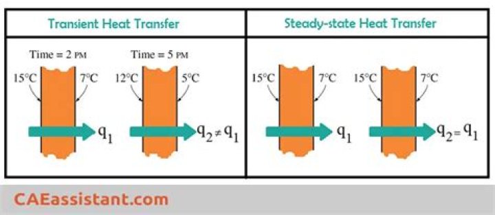 In steady-state heat transfer, the temperature is constant throughout time. In transient heat transfer, the temperature changes with time.