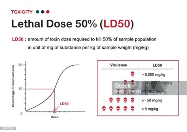 Compounds with an oral LD50 of 0–50 mg/kg are considered highly toxic, whereas compounds with an LD50 of greater than 2000 mg/kg are considered of low toxicity (for example, the LD50 of table salt is approximately 3000 mg/kg).