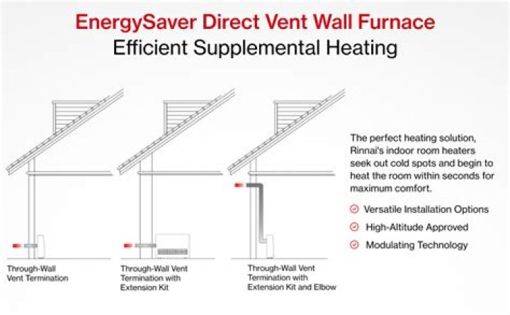A direct-vent wall furnace is a self-contained sealed combustion heating appliance that warms inside air by recirculating it around a sealed chamber, and discharges combustion byproducts outside the home via direct-vent. They are permanently attached to the structure of a building, and are not connected to ductwork.