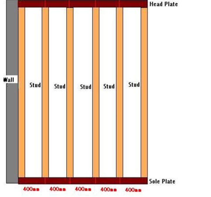 Studs are spaced evenly along the wall usually 16/24″ or 400/600mm. It is important to keep this spacing to a clean fraction of the plasterboard width, so that the edges of the board always fall on a stud without each board needing to be cut to fit.