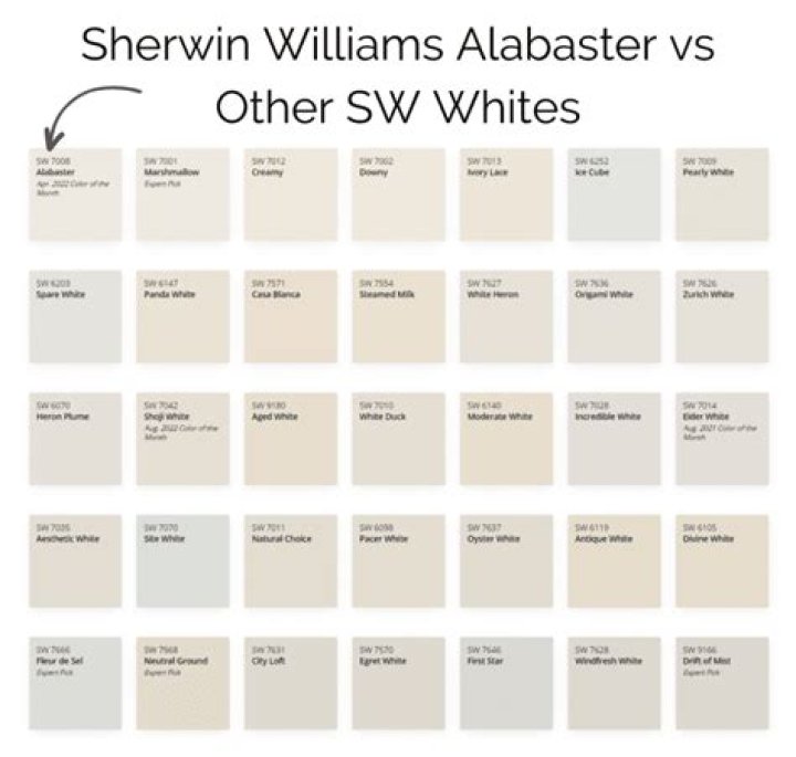 Alabaster is technically an off white, and is nestled right under Sherwin Williams Pure White on the Sherwin Williams 2020 fan deck. Sherwin Williams Pure White is a cooler shade of white with a bit more blue undertones. Alabaster is what I would consider a warm white; it’s way more brown in its undertones than blue.What color does Alabaster go with?