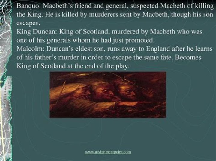 Banquo is friends with: Macbeth – is a great friend to begin with. They have fought bravely beside each other in battle. Macbeth doesn’t want to kill Banquo, but the Witches have said that Banquo’s children will be kings.