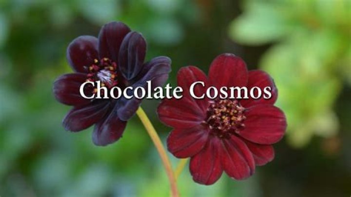 Chocolate Cosmos Info Chocolate cosmos flowers (Cosmos atrosanguineus) are dark reddish brown, almost black, and have a chocolate scent. … Chocolate cosmos plants are often grown in containers and borders so their color and scent can be fully enjoyed.