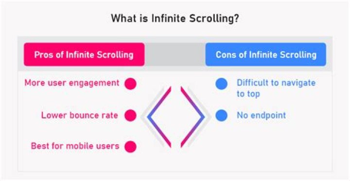 While pagination spreads chunks of content across a series of webpages, infinite scrolling allows you to browse through the content in its entirety from just one single webpage. Once the scroll bar reaches the bottom of the page, new content loads automatically, allowing for endless scrolling.