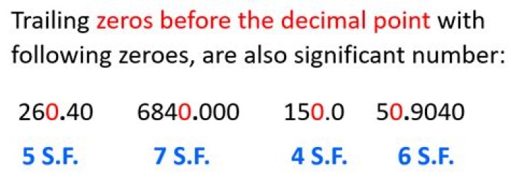 The terminal or trailing zeros in a number with a decimal point are significant. Example : In 23.60 m, the terminal zero has significance, so the number of significant figures in this number is four (2, 3, 6 and 0).