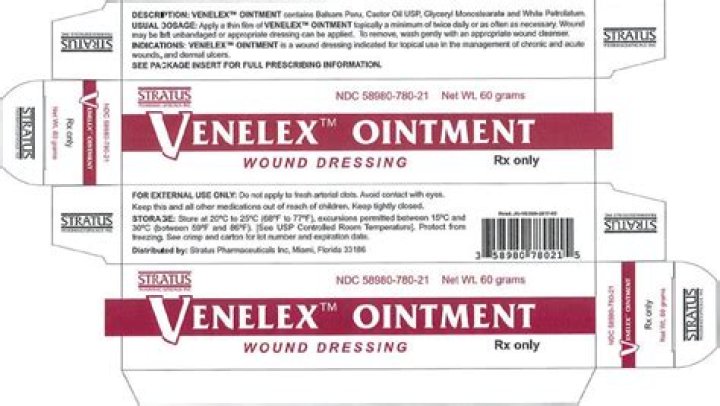 Venelex (for the skin) is a combination medicine used to treat skin wounds, bed sores, diabetic skin ulcers, and other skin conditions resulting from decreased blood flow or skin grafts. Venelex helps reduce odor and creates a protective layer over skin wounds.