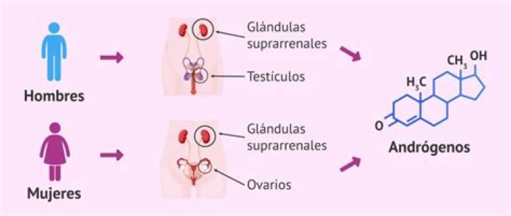 Los andrógenos se producen a partir de la transformación del colesterol, en la glándula suprarrenal y en los ovarios (1,2). Los músculos y el tejido graso también pueden sintetizar testosterona (3).
