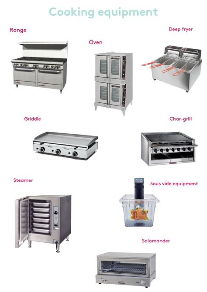- Large Equipment. Ranges, Steamers, boiling pans, fryers, tables, sinks etc.