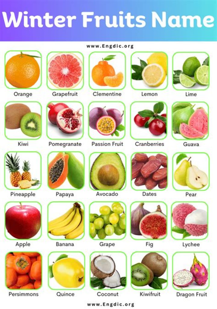 - Apples. Indian-origin apples from the mountainous northern areas are one of the most available fruits during the winter season. …