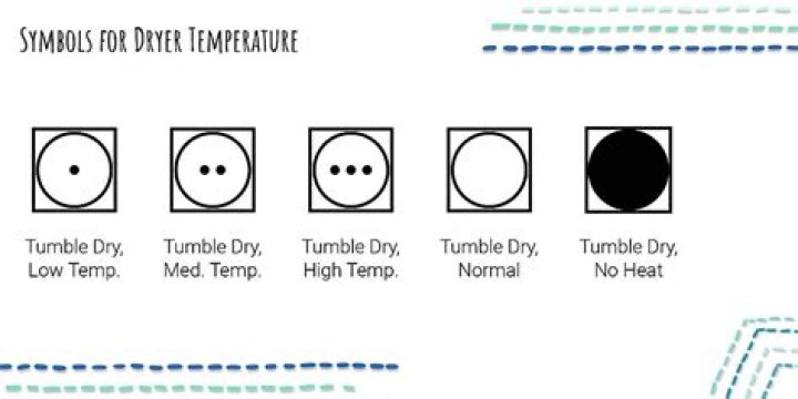 A square with a circle inside means that the item can be safely tumble dried, while the number of dots inside the tumble dry symbol indicates what temperature setting to use: one dot stands for low heat, two dots for medium, and three for high heat setting.