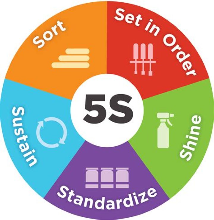 5S or good housekeeping involves the principle of waste elimination through workplace organization. 5S was derived from the Japanese words seiri, seiton, seiso, seiketsu, and shitsuke. In English, they can be roughly translated as sort, set in order, clean, standardize, and sustain.