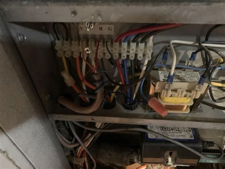The wires are typically arranged as follows: red for 24-volt hot, white for heat, yellow for cooling, green for the fan, and blue for common (although the common wire may be a different color).