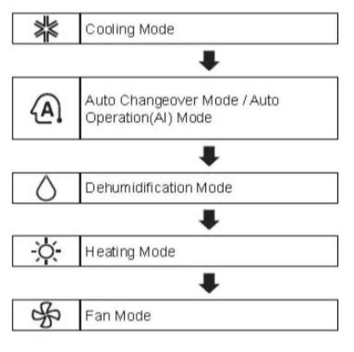 Auto Operation(AI) Mode in LG Split Air Conditioner. This mode automatically sets the fan speed and temperature depending on the room temperature. This Function/Feature is only available in Cooling Only Model.