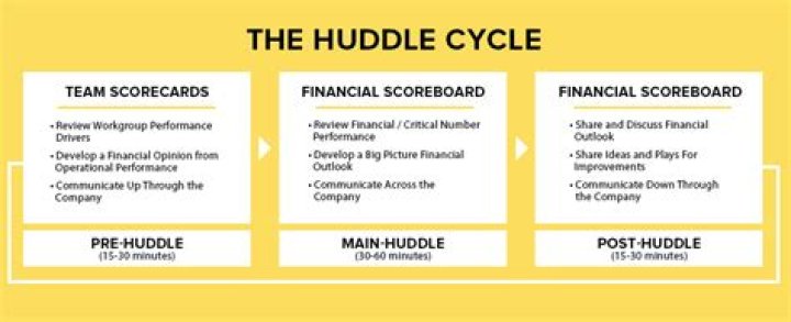 Why is team huddle important?The purpose of team Huddles are to drive employee engagement and to serve as a self-correcting measure to keep the company on the path toward achieving its goals. To do this we first get employees educated on company financial information and define the numbers that are most important in an organization.