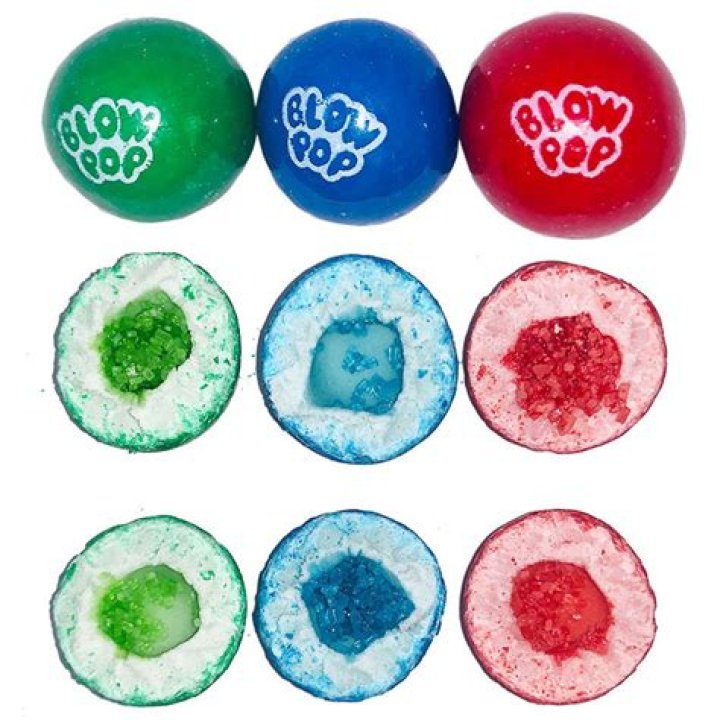 Charms Blow Pops have a chewy, bubble gum center surrounded by a delicious, fruit-flavored, hard candy shell.