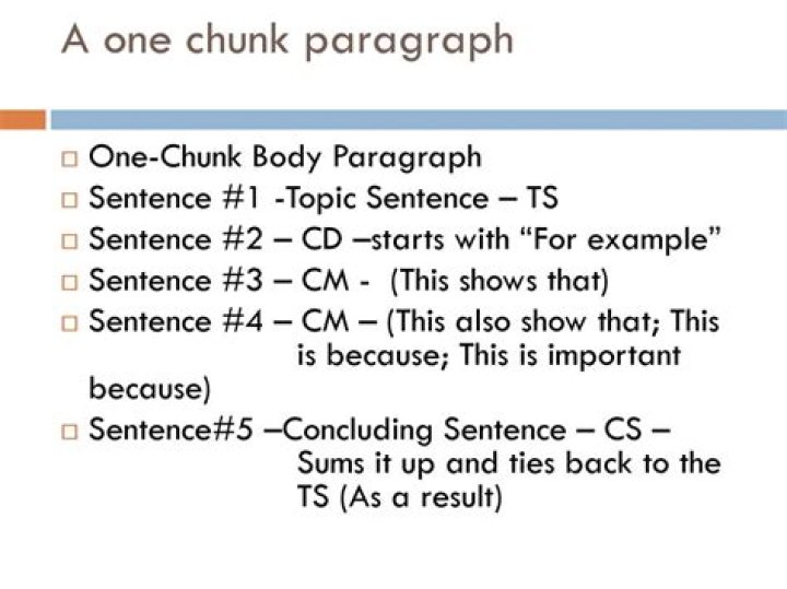 What is a One Chunk Paragraph? Chunk. A chunk is one sentence of concrete detail and two sentences of commentary. It is the smallest unified group of thoughts that you can write.