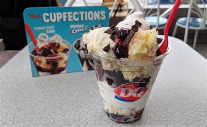 Dairy Queen’s New Brownie And Oreo ‘Cupfection’ Sundae Is A Layered Chocolate Dream. … It begins with creamy DQ vanilla soft serve, and is topped with a Triple Chocolate Brownie, pieces of Oreos, chocolate sauce, and marshmallow topping. It sounds rich and delicious and soooo worth the 720 calories.