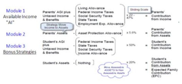Under the EFC formula, up to 47% of the parents’ adjusted gross income is considered available for college funding. Although the maximum percentage is 47% it is typically between 20% to 25% that is considered to be available for college funding.