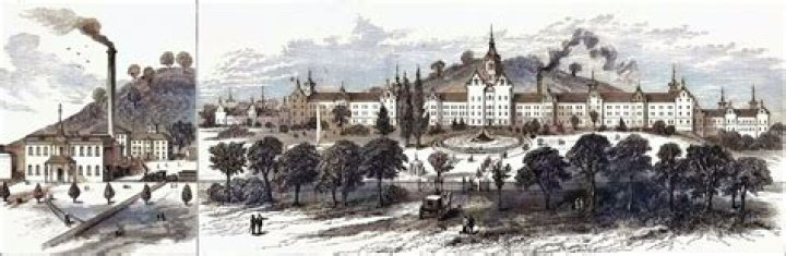 Closed in 1989, the hospital has been converted into residential condos, offices, and retail space. The state mental hospital reflects a bygone era in American psychiatry.