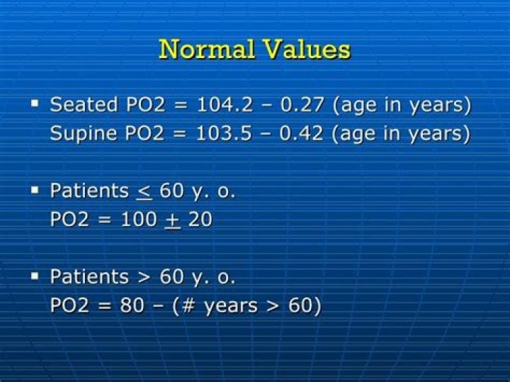The PaO2 measurement shows the oxygen pressure in the blood. Most healthy adults have a PaO2 within the normal range of 80–100 mmHg. If a PaO2 level is lower than 80 mmHg, it means that a person is not getting enough oxygen .