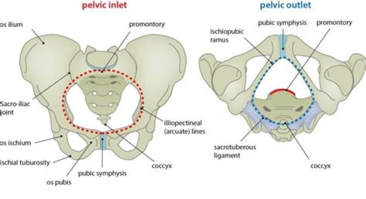 The pelvis is a basin-shaped structure that supports the spinal column and protects the abdominal organs. It contains the following: Sacrum. A spade-shaped bone that is formed by the fusion of 5 originally separate sacral vertebrae. Coccyx (also called the tail bone).