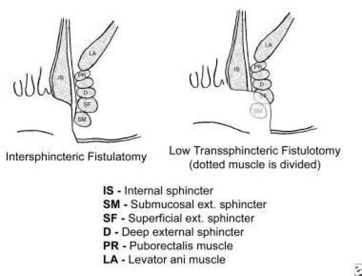 Seton gradually passes through external sphincteric muscle till it is displaced outwards or removed by a surgeon via a small incision. 94% of patients treated by this method accomplished their treatment completely without recurrence.