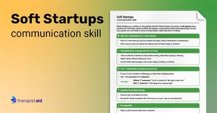 A soft start-up serves to protect both you and your partner from feeling either attacked or defensive. It’s a proven way to bring up a legitimate disagreement, concern, issue, complaint, or need without blaming your partner or judging their character.