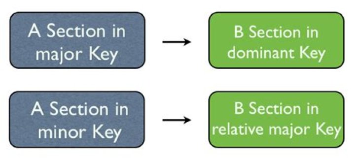 Note: ABA and ABA′ are the most common ternary forms. There are, however, other three-part forms. A piece may, for example, proceed through three contrasting sections (ABC) or through three different versions of a single section (AA′A″).