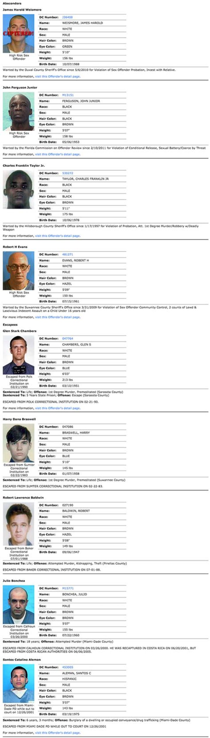 What does fugitive inmate mean?