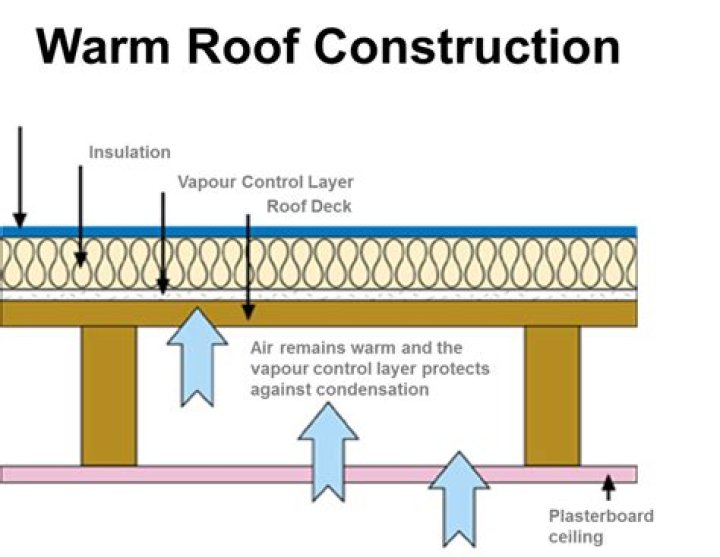 A warm roof is a type of roof construction which has an insulation layer above the rafters, and immediately below its weatherproof membrane. … A warm roof construction allows heat to be conserved within a property – without the need for a ventilation system.