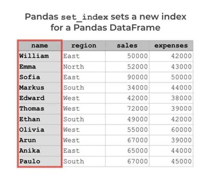 Pandas set_index() is a method to set a List, Series or Data frame as index of a Data Frame. Index column can be set while making a data frame too. But sometimes a data frame is made out of two or more data frames and hence later index can be changed using this method.