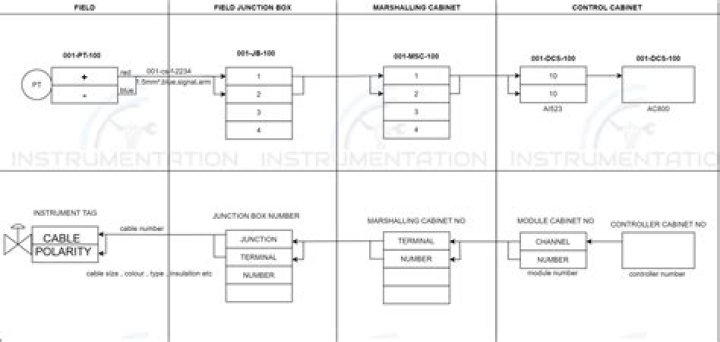 Instrument loop diagram (ILD) represents a connection from the field instrument to Control Room. ( vice versa) Instrument loop diagram is divided into two basic sections. One is the field side and other is Control Room side. ( vice versa)