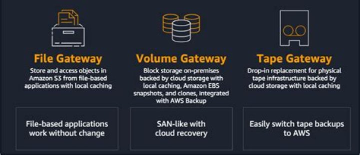 Introducing AWS Storage Gateway To support these use cases, the service provides four different types of gateways – Tape Gateway, Amazon S3 File Gateway, Amazon FSx File Gateway, and Volume Gateway – that seamlessly connect on-premises applications to cloud storage, caching data locally for low-latency access.
