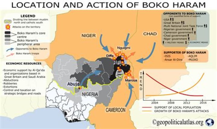 Since its creation in 2009, Boko Haram has waged an insurgency in north-eastern Nigeria, and carried out attacks in neighbouring Chad, Niger and Cameroon. In Nigeria, the violence has displaced over two million people and caused at least 30,000 deaths.