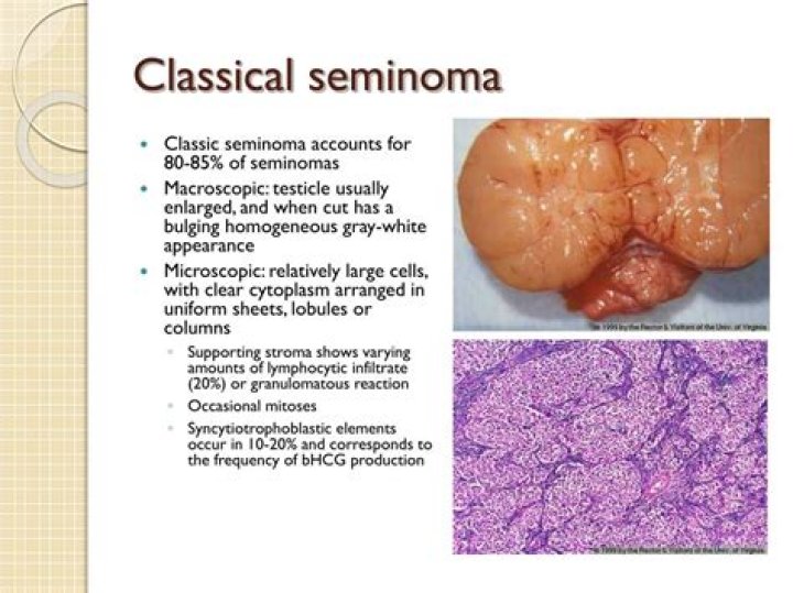 Other names. Pure seminoma, classical seminoma. Specialty. Urology, oncology. A seminoma is a germ cell tumor